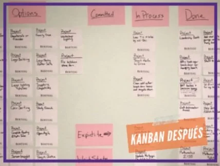 Tu tablero debe estar en un espacio físico y posicionado de tal manera que todos los interesados en su ejecución puedan echarle un vistazo en cualquier momento en el que se acerquen a tu lugar de trabajo. Un tablero digital hace que todo sea invisible, evita tener tableros digitales. Es tentador tratar de encontrar una solución que funcione en línea o en nuestros dispositivos portátiles. Estas herramientas sacrifican la visibilidad por conveniencia. El poder del tablero Kanban personal es generado por otros que ven tu situación. En Suncor, la junta física de Darin en realidad catalizó muchas discusiones importantes sobre la capacidad y la calidad. La junta finalmente llevó a muchos otros en su departamento a adoptar diferentes niveles de agilidad.