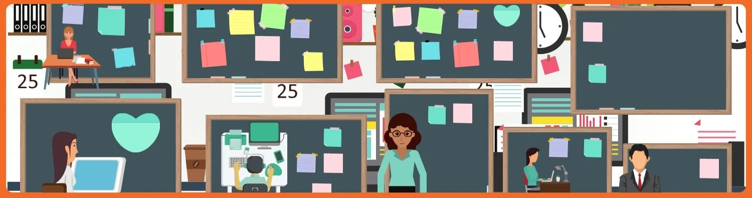 Todos los tableros son visibles para todos en el equipo, a menudo en un espacio común.